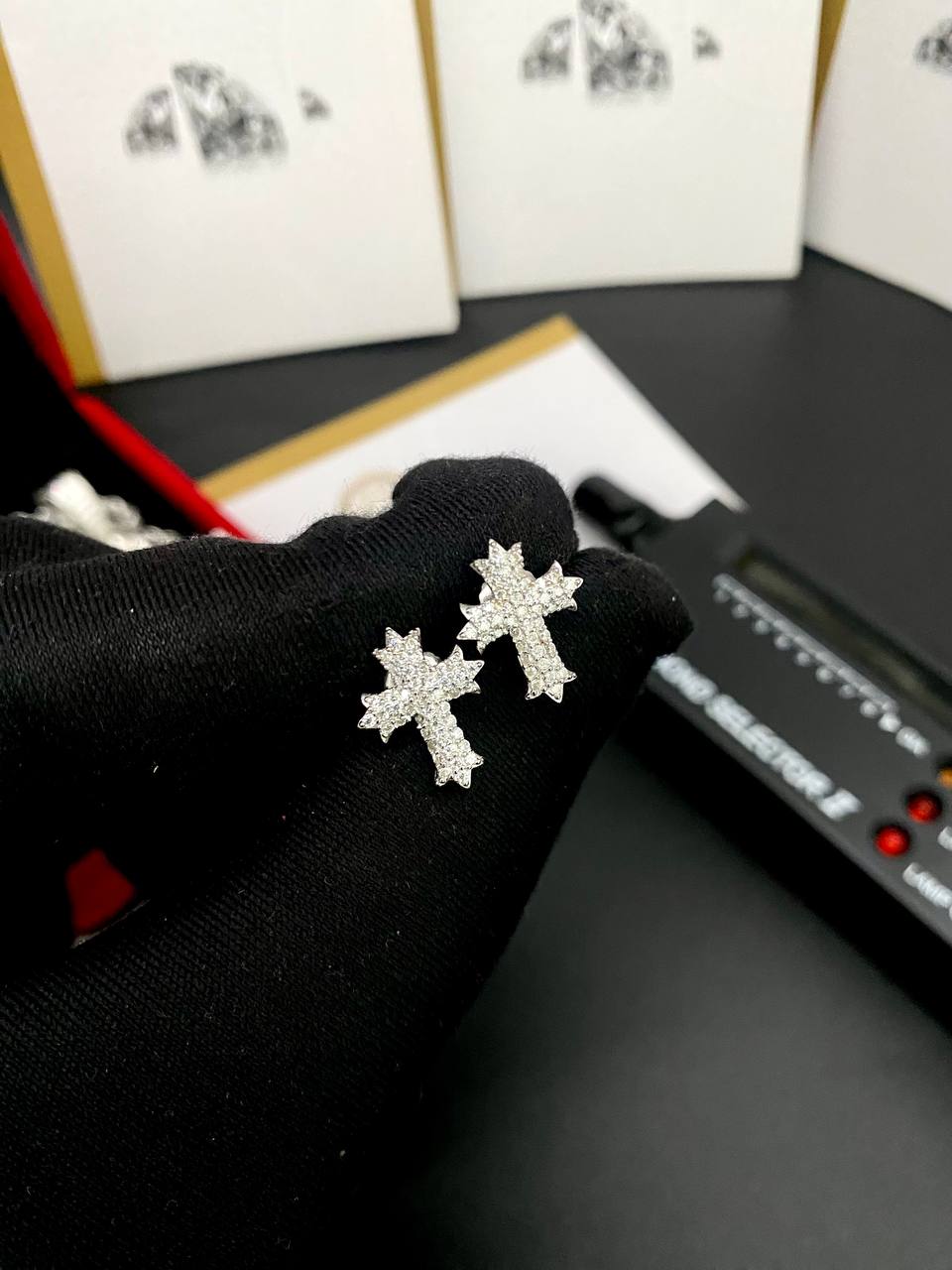 Silver-Tone Moissanite Cross Pendant Necklace with Matching Earrings